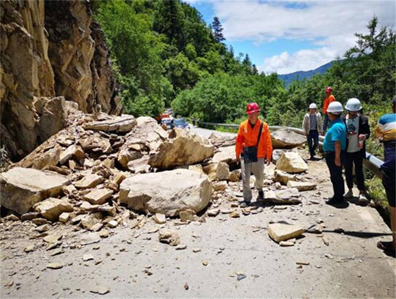 6月22日,因受突降暴雨影響,國道351線磽磧至夾金山路面改造工程1標段右轉(zhuǎn)2500米及K3127+850等多處發(fā)生大面積邊坡垮塌,垮塌方量約9200余方,沿線路面出現(xiàn)大量落石,造成交通阻斷。隨著降雨天氣的持續(xù),災(zāi)情還有繼續(xù)擴大的趨勢。為了確保國道351線的暢通,該公司在接到預(yù)警信息后及時組織人員和機械設(shè)備全力以赴進行搶險搶通工作,于當(dāng)日下午3點排除險情,搶修完畢,保證了車輛行人的正常通行和工程進度。
