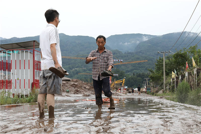 8月18日下午,在草壩青衣江大橋建設(shè)現(xiàn)場(chǎng),項(xiàng)目部外的院壩、工地附近的道路,均覆蓋著厚厚的淤泥!白蛲砭o急撤離,我的車停在河邊,也沒(méi)來(lái)得及開(kāi)走,現(xiàn)在都沒(méi)找到!币荒樒v的李勁松告訴記者,雖然洪水漲勢(shì)迅猛,但他們撤離之前,提前通知了電力部門斷電,否則若有人再次靠近洪水,將面臨觸電的風(fēng)險(xiǎn)。