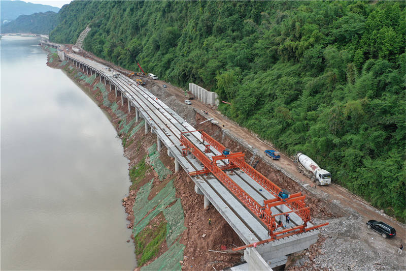 5月11日18時許,省道104線草壩至姚橋段改建工程項目預(yù)制梁4座橋梁,共355片梁全部架設(shè)完成全,實現(xiàn)左幅全線貫通。
