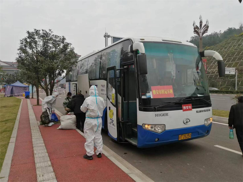 受疫情影響我省大量務(wù)工人員滯留西藏、新疆,四川省為解決我省經(jīng)商務(wù)工人員返鄉(xiāng)需求主動(dòng)對(duì)接兩地開(kāi)行四川返鄉(xiāng)專列,按照疫情防控要求在專列開(kāi)行期間抵蓉后,由各市州調(diào)派運(yùn)力采用接力閉環(huán)運(yùn)輸?shù)姆绞綄⒎掂l(xiāng)人員納入疫情防控管理。市交通局安排蜀通公司負(fù)責(zé)我市外省返雅務(wù)工人員的閉環(huán)轉(zhuǎn)運(yùn)工作,接到任務(wù)后公司馬上制定了轉(zhuǎn)運(yùn)方案和安全、防疫保障措施,成立了工作專班確保該階段性工作順利完成。