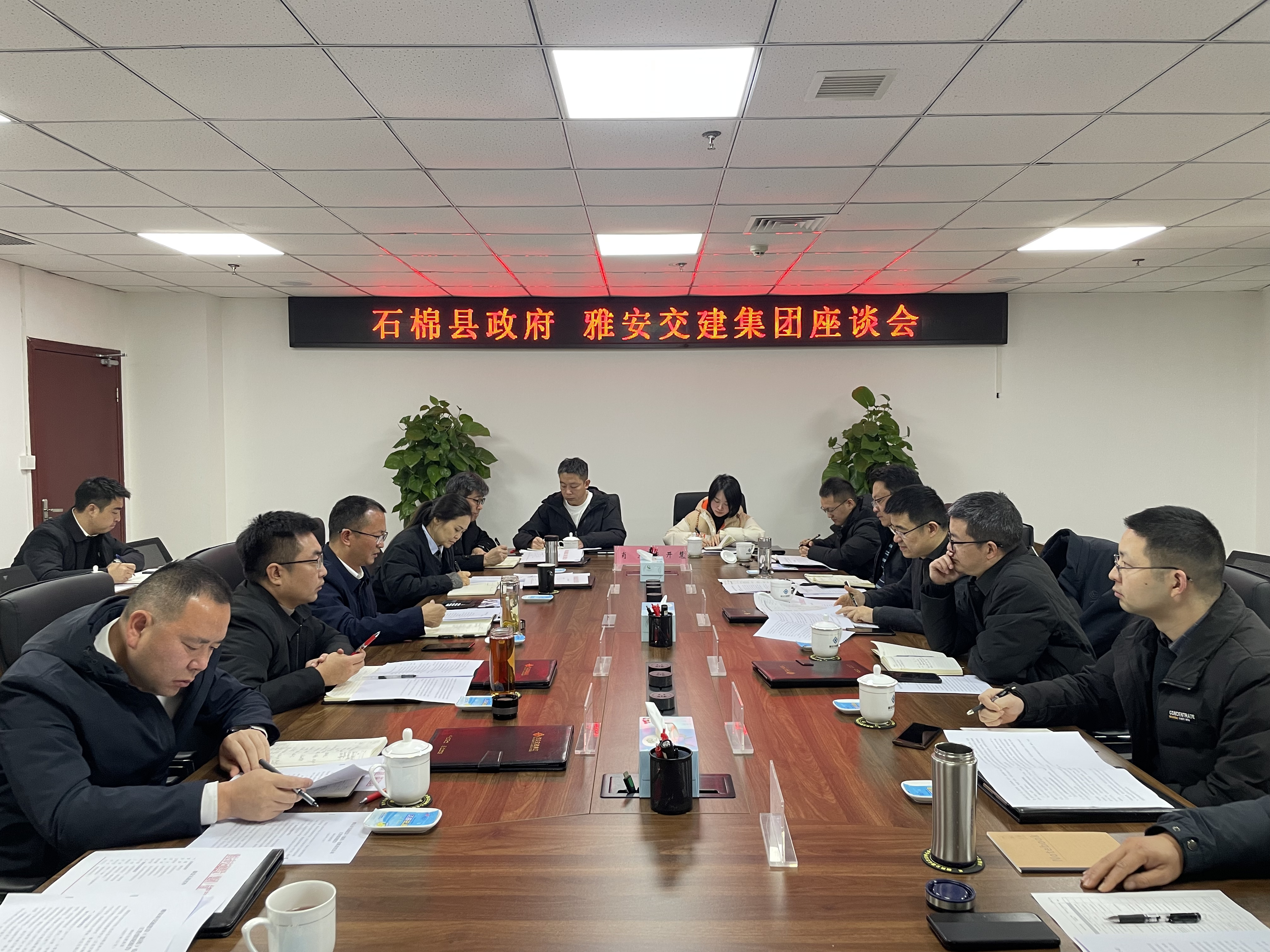 12月24日,石棉縣人民政府副縣長曹冀帶隊(duì)赴雅安交建集團(tuán)開展工作座談?h發(fā)改、交通、住建、財(cái)政等部門負(fù)責(zé)人;交建集團(tuán)黨委副書記、總經(jīng)理趙飛勇,黨委委員、副總經(jīng)理丁春、鐘焱宇,路橋公司、項(xiàng)管(川康)公司、建管部、投發(fā)部負(fù)責(zé)人參與座談。