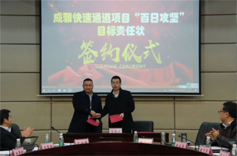 會上,項目公司介紹了項目建設情況;市交通運輸局安排布置了“百日攻堅”活動;中建三局、六局、參建單位分別發(fā)言,建設單位分別與各標段簽訂“百日攻堅”責任狀,會議在嚴肅又緊張的氛圍下進行。