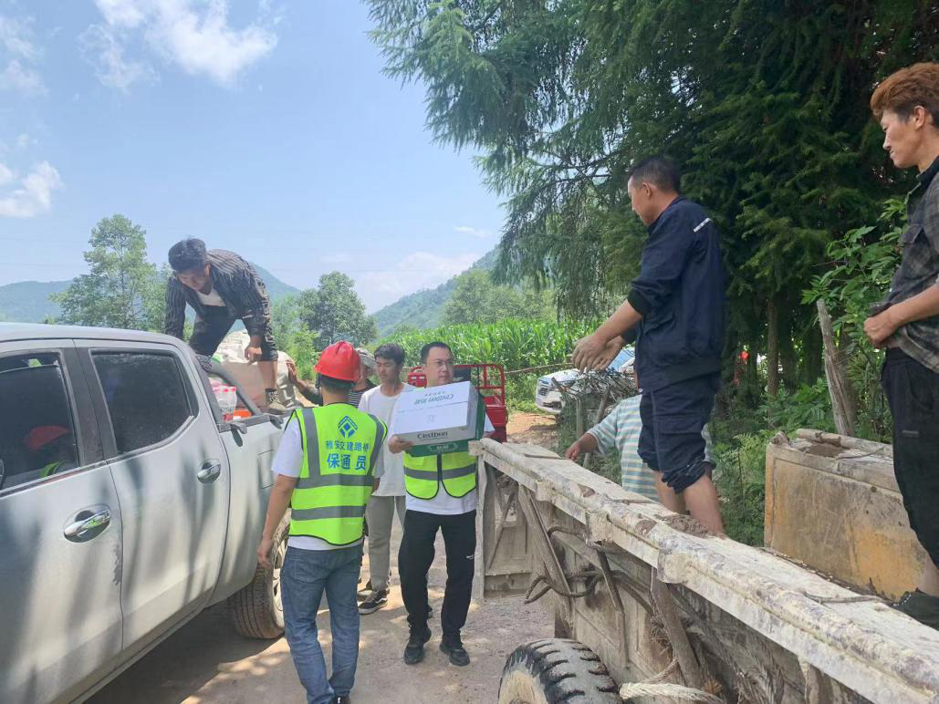 雅安交建路橋獲知受災(zāi)消息后,立即就近安排石棉項(xiàng)目部主動(dòng)與甘孜州遭受暴雨侵襲當(dāng)?shù)卮逦瘯?huì)取得聯(lián)系并了解具體受災(zāi)情況,隨后及時(shí)投入2臺(tái)挖機(jī)1臺(tái)裝載機(jī)、15臺(tái)對(duì)講機(jī),人員12名,攜帶救災(zāi)生活物資(飲用水40件、方便面40件)第一時(shí)間抵達(dá)瀘定縣德托鎮(zhèn)發(fā)旺村受災(zāi)現(xiàn)場(chǎng),幫助受災(zāi)村民成功脫困并協(xié)助轉(zhuǎn)移物資,開(kāi)展道路恢復(fù)、河道梳理等搶險(xiǎn)救災(zāi)工作。