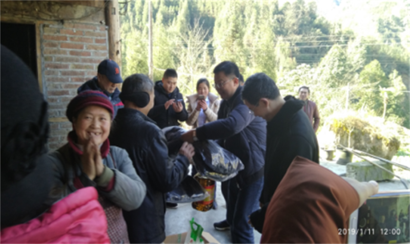 1月10日、11日,公司班子一行通過集中發(fā)放慰問品和走訪慰問貧困戶代表的方式,先后對名山區(qū)車嶺鎮(zhèn)石堰村、蘆山縣大川鎮(zhèn)快樂村開展慰問,為兩個村的159戶建檔立卡貧困戶、貧困老黨員們送上了大米、清油、面粉、掛面、愛心棉衣等慰問物品,將愛心傳達給每一位困難群眾的同時,每到一處,公司領(lǐng)導(dǎo)們都耐心細致的和貧困戶促膝交談,關(guān)心其家庭和收入情況,詳細了解其脫貧情況,并介紹國家扶貧政策、傳達黨委政府對每戶貧困戶的關(guān)心和掛念,引導(dǎo)貧困戶既要感恩黨和政府,又要學(xué)會自力更生,鼓勵他們一定要樹立樂觀健康心態(tài),克服困難,用勤勞的雙手早日致富奔康。