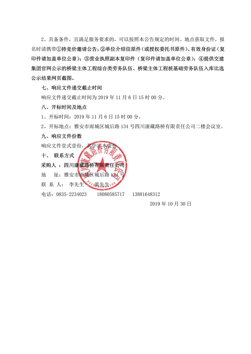 四川康藏路橋有限責(zé)任公司草壩青衣江大橋(茶地坎碼頭渡改橋)項(xiàng)目橋梁樁基礎(chǔ)施工勞務(wù)競價(jià)公告