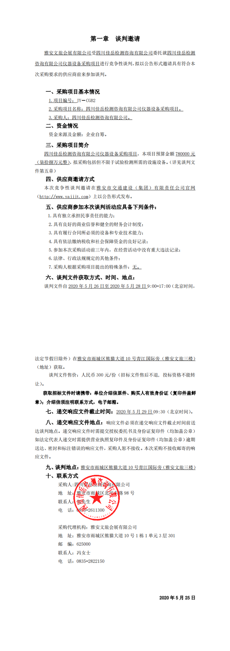四川佳岳檢測咨詢有限公司儀器設(shè)備采購項(xiàng)目競爭性談判公告