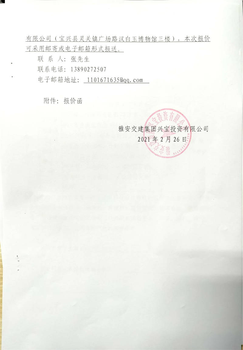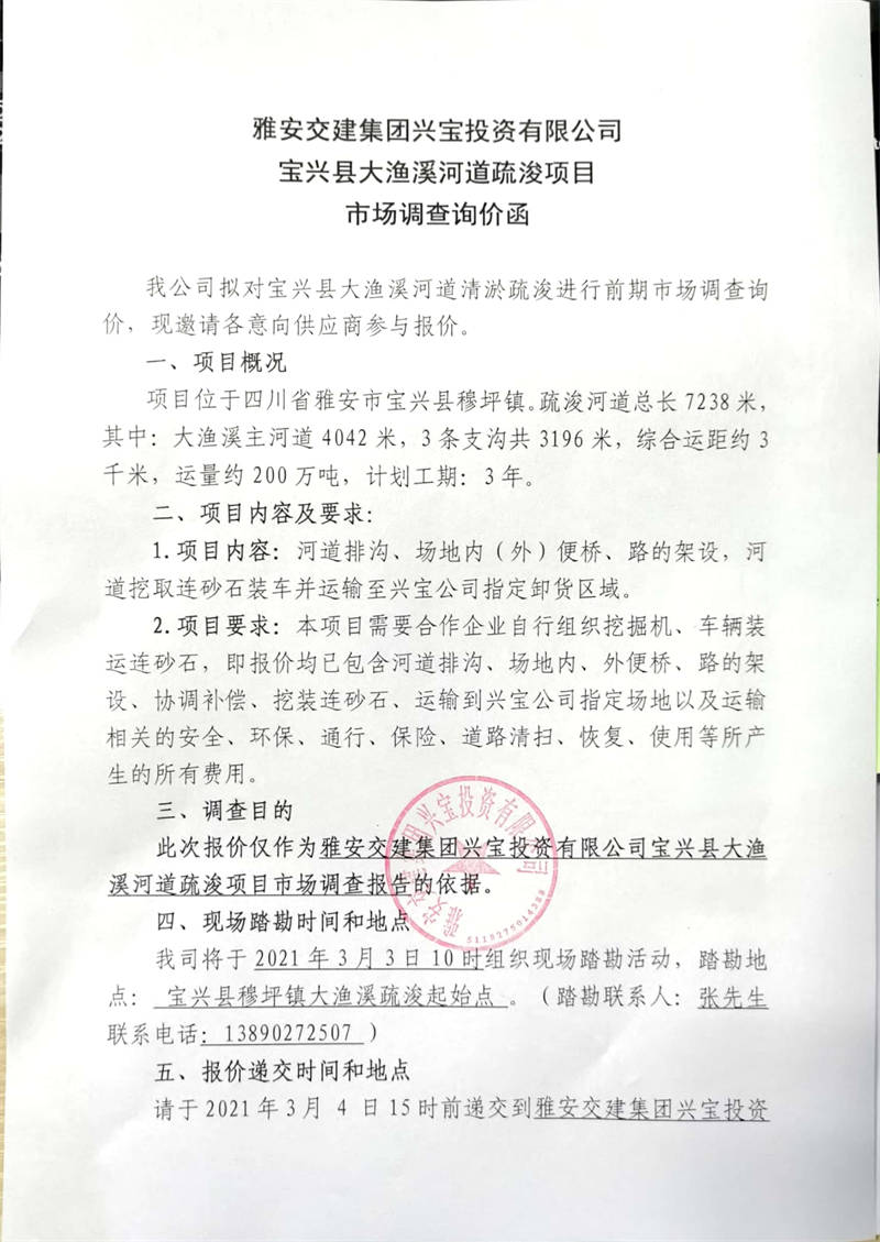 雅安交建集團(tuán)興寶投資有限公司寶興縣大漁溪河道疏浚項(xiàng)目市場(chǎng)調(diào)查詢(xún)價(jià)公告