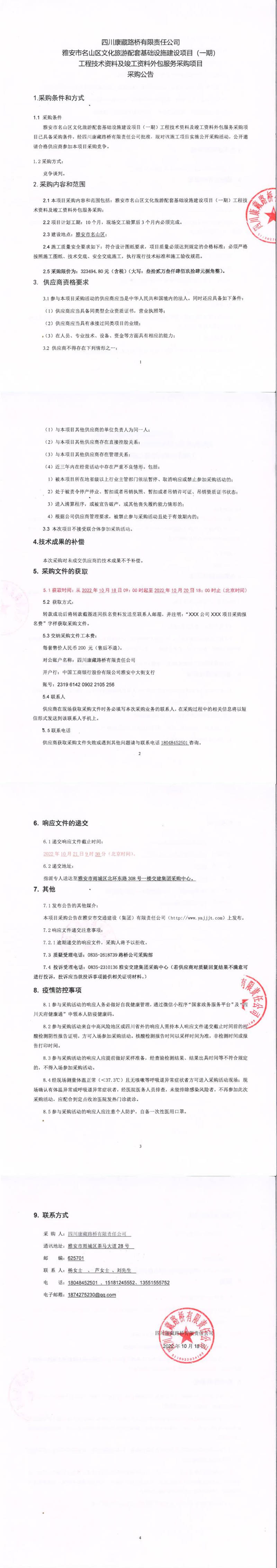 四川康藏路橋有限責任公司雅安市名山區(qū)文化旅游配套基礎設施建設項目(一期)工程技術資料及竣工資料外包服務采購項目采購公告