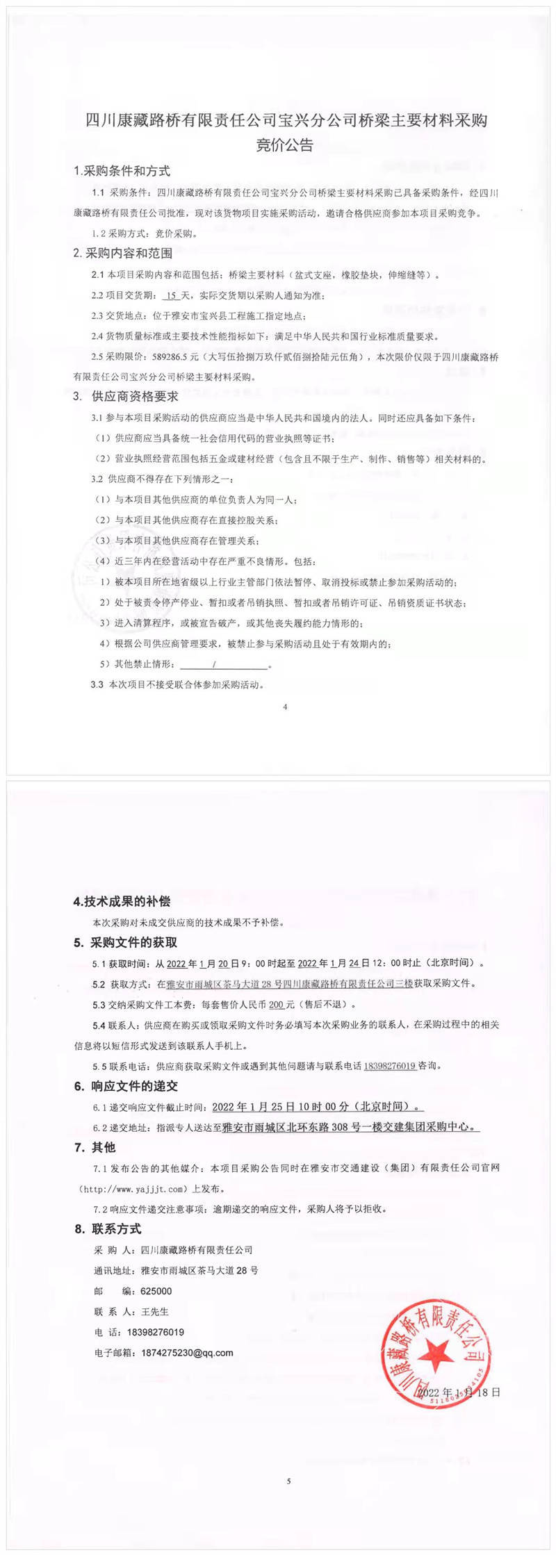 四川康藏路橋有限責(zé)任公司2022年第一季度供應(yīng)商入庫招募公告