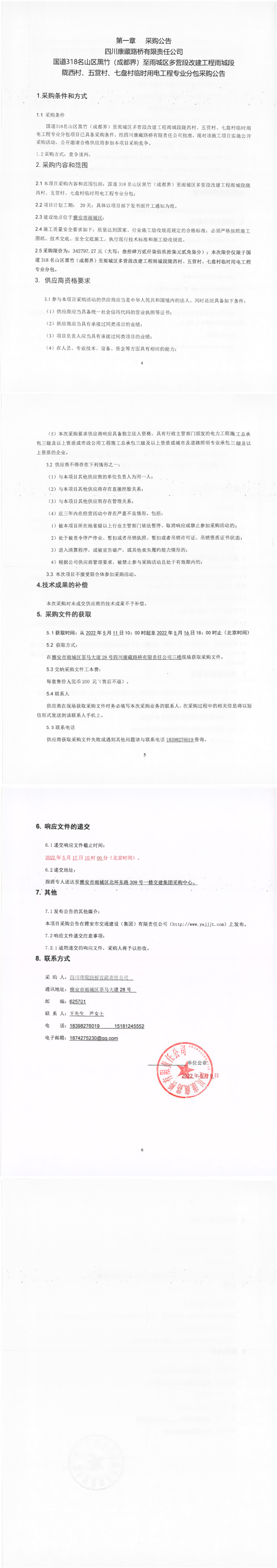 四川康藏路橋有限責(zé)任公司G318線成都界至雨城段新改建項(xiàng)目名山段臨時用電工程專業(yè)分包采購公告