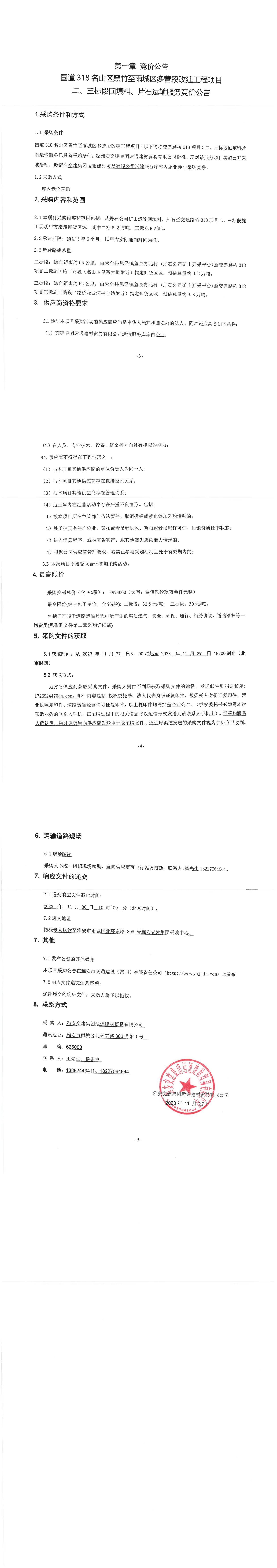 交建集團運通建材貿(mào)易有限公司國道318名山區(qū)黑竹至雨城區(qū)多營段改建工程項目二、三標(biāo)段回填料、片石運輸服務(wù)競價公告