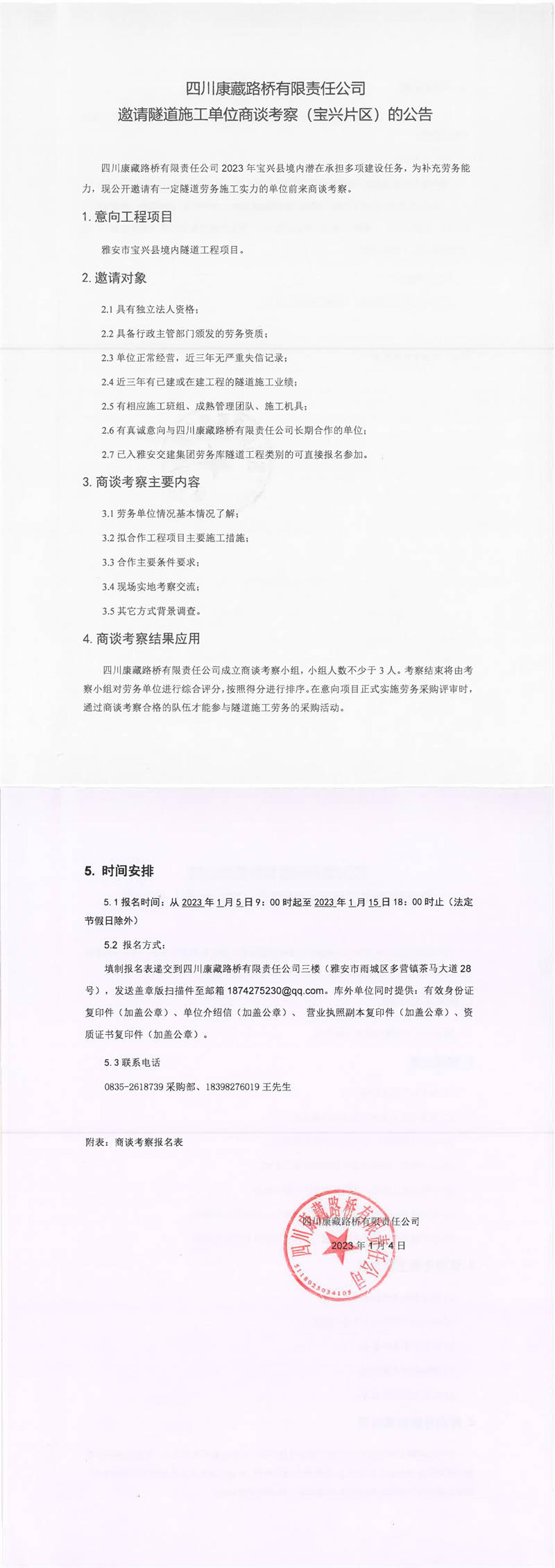 四川康藏路橋有限責(zé)任公司邀請(qǐng)隧道施工單位商談考察(寶興片區(qū))的公告