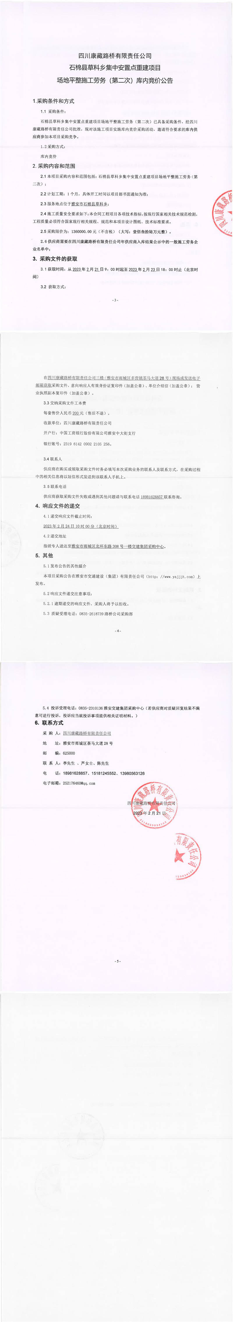 四川康藏路橋有限責(zé)任公司石棉草科鄉(xiāng)集中安置點重建項目場地平整施工勞務(wù)(第二次)庫內(nèi)競價公告