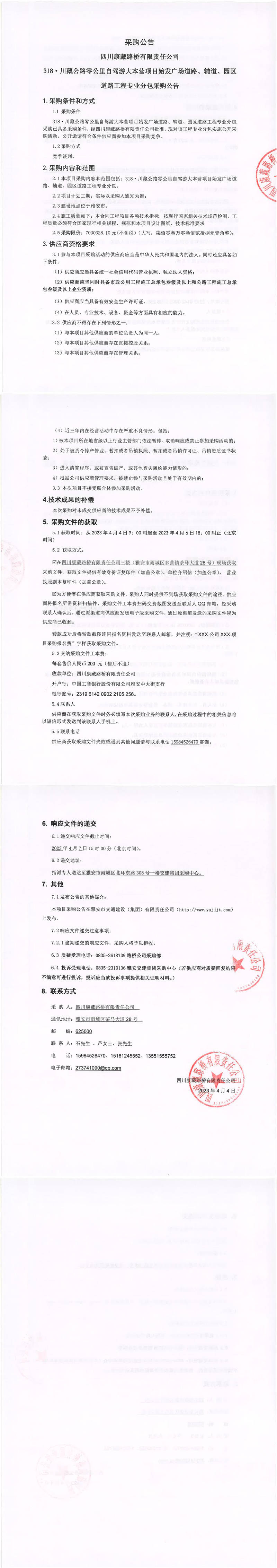 四川康藏路橋有限責(zé)任公司318·川藏公路零公里自駕游大本營項目始發(fā)廣場道路、輔道、園區(qū)道路工程專業(yè)分包采購公告