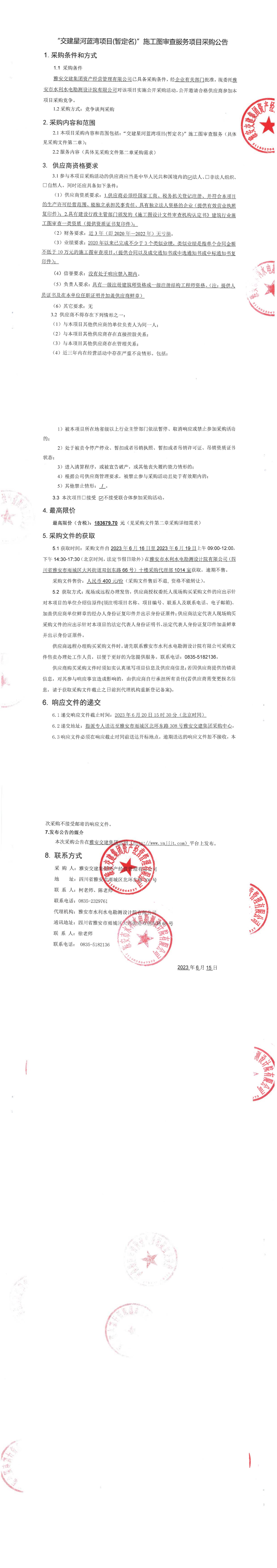 雅安交建集團(tuán)資產(chǎn)經(jīng)營管理有限公司“交建星河藍(lán)灣項(xiàng)目(暫定名)”施工圖審查服務(wù)項(xiàng)目采購公告