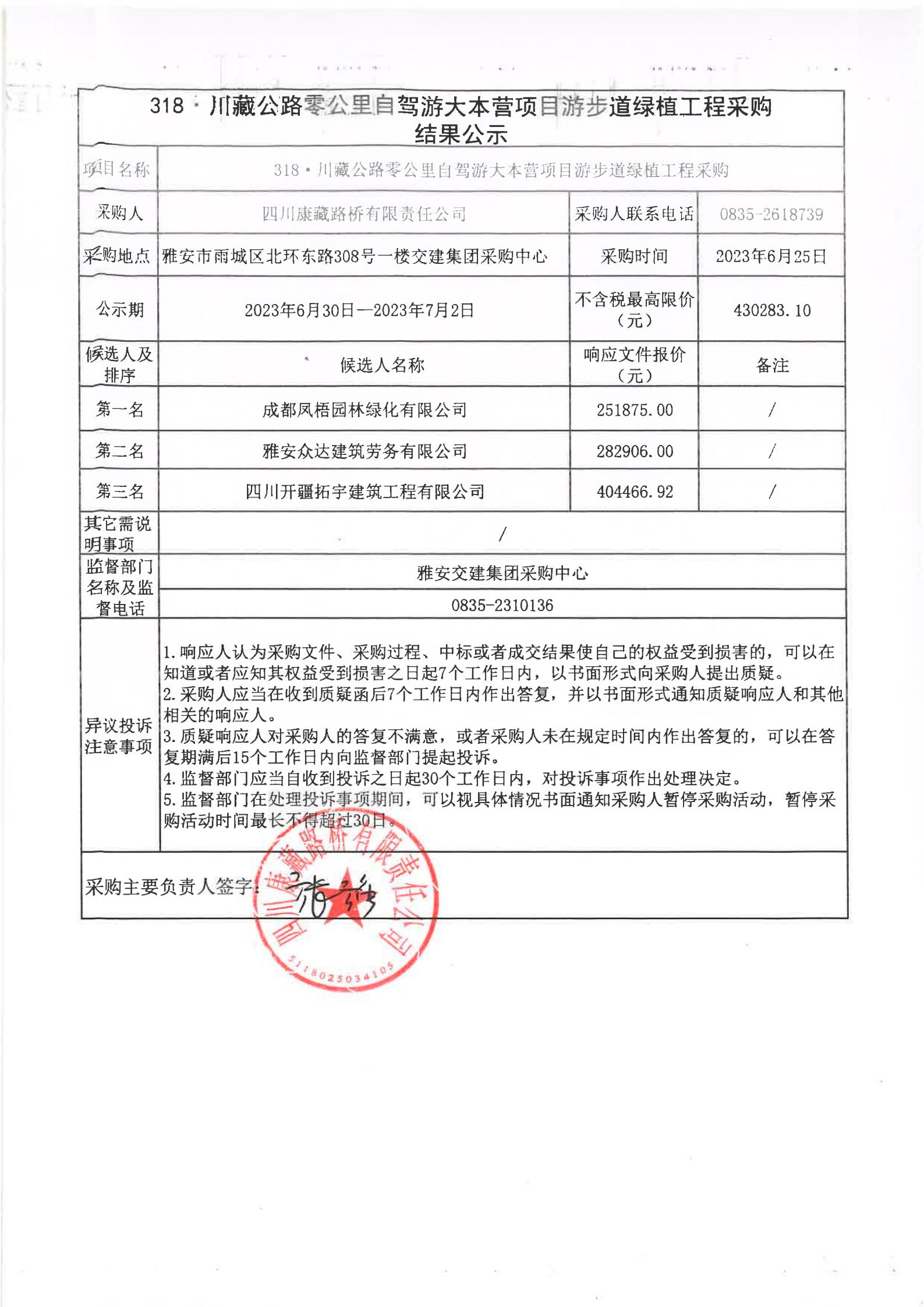 四川康藏路橋有限責(zé)任公司318·川藏公路零公里自駕游大本營項(xiàng)目游步道綠植工程采購結(jié)果公示