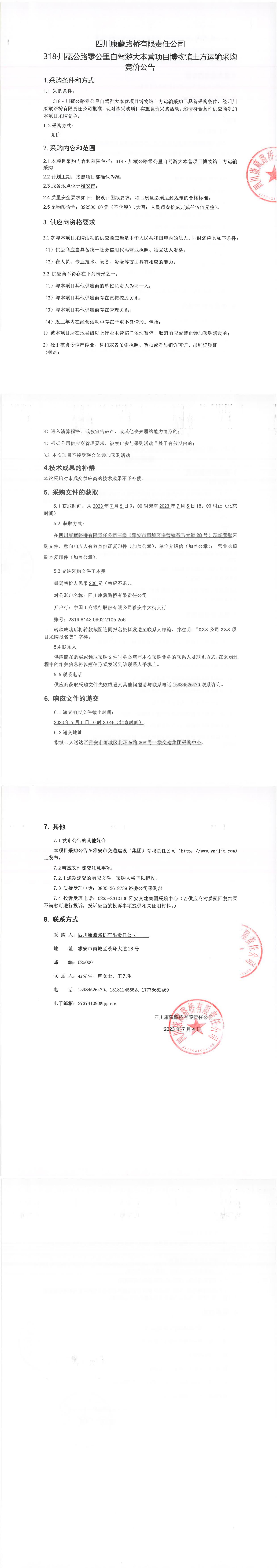 四川康藏路橋有限責(zé)任公司318·川藏公路零公里自駕游大本營項目博物館土方運輸采購競價公告