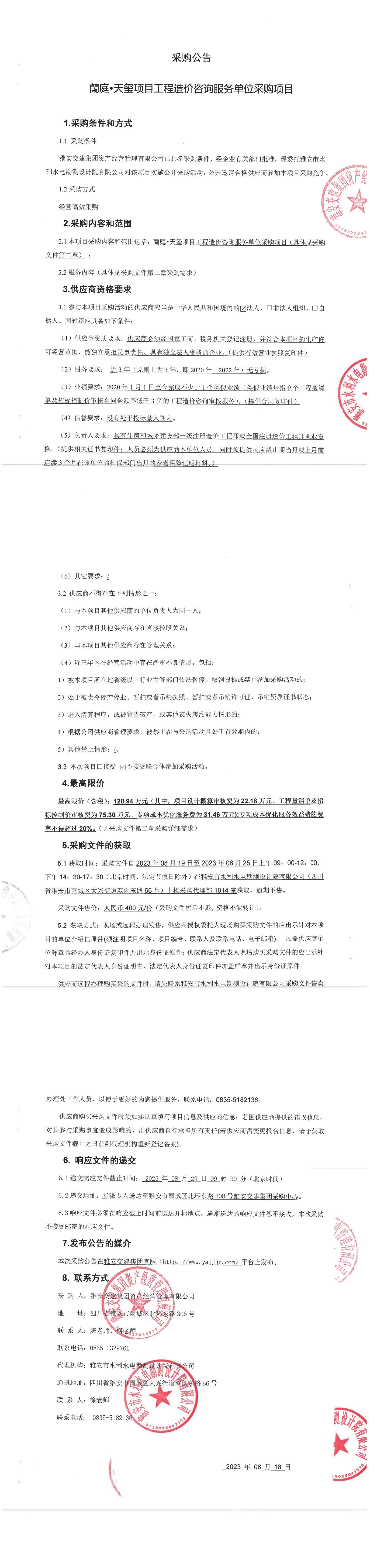 雅安交建集團(tuán)資產(chǎn)經(jīng)營管理有限公司蘭庭·天璽項(xiàng)目工程造價(jià)咨詢服務(wù)單位采購項(xiàng)目采購公告