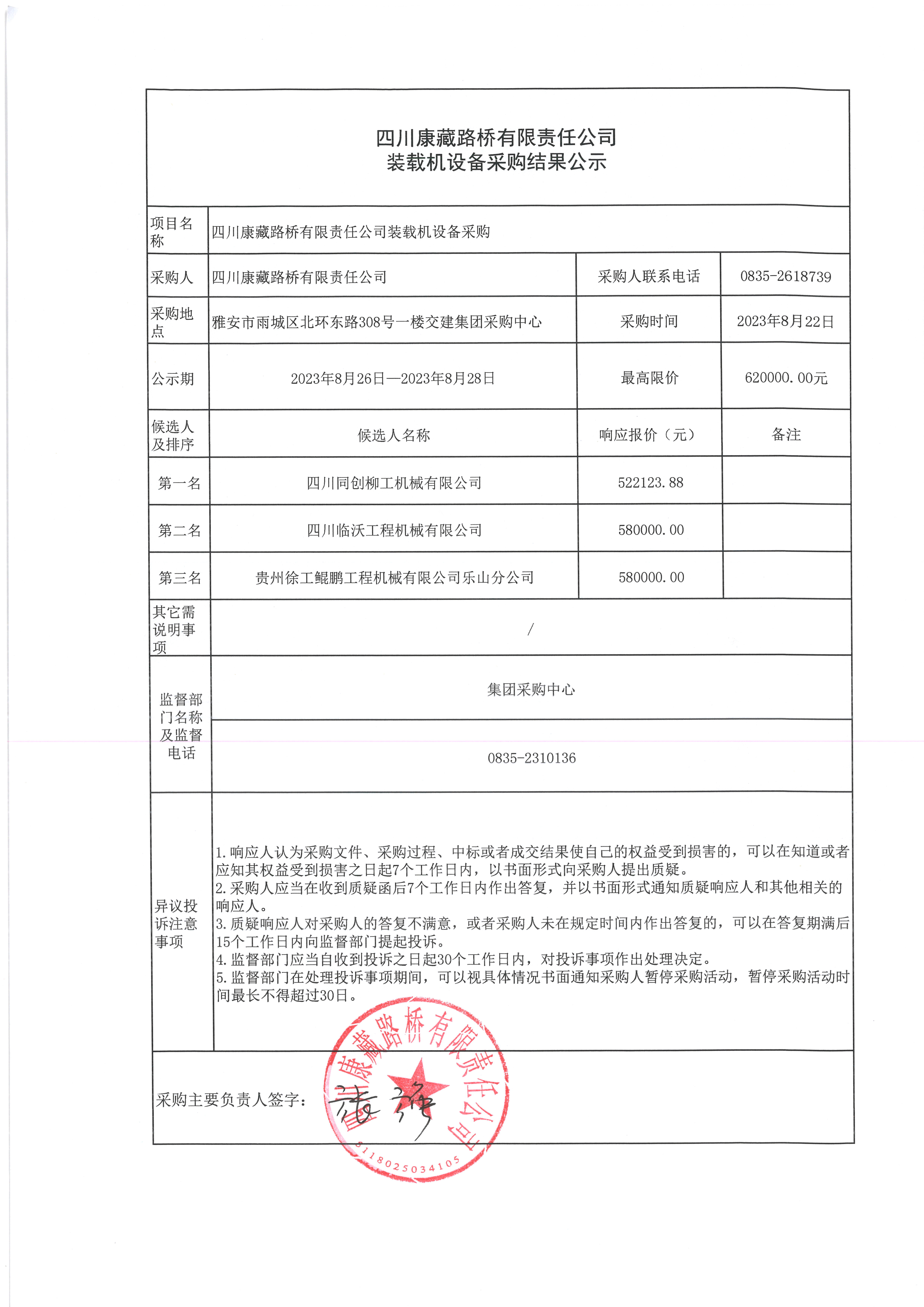四川康藏路橋有限責任公司裝載機設備采購結(jié)果公示