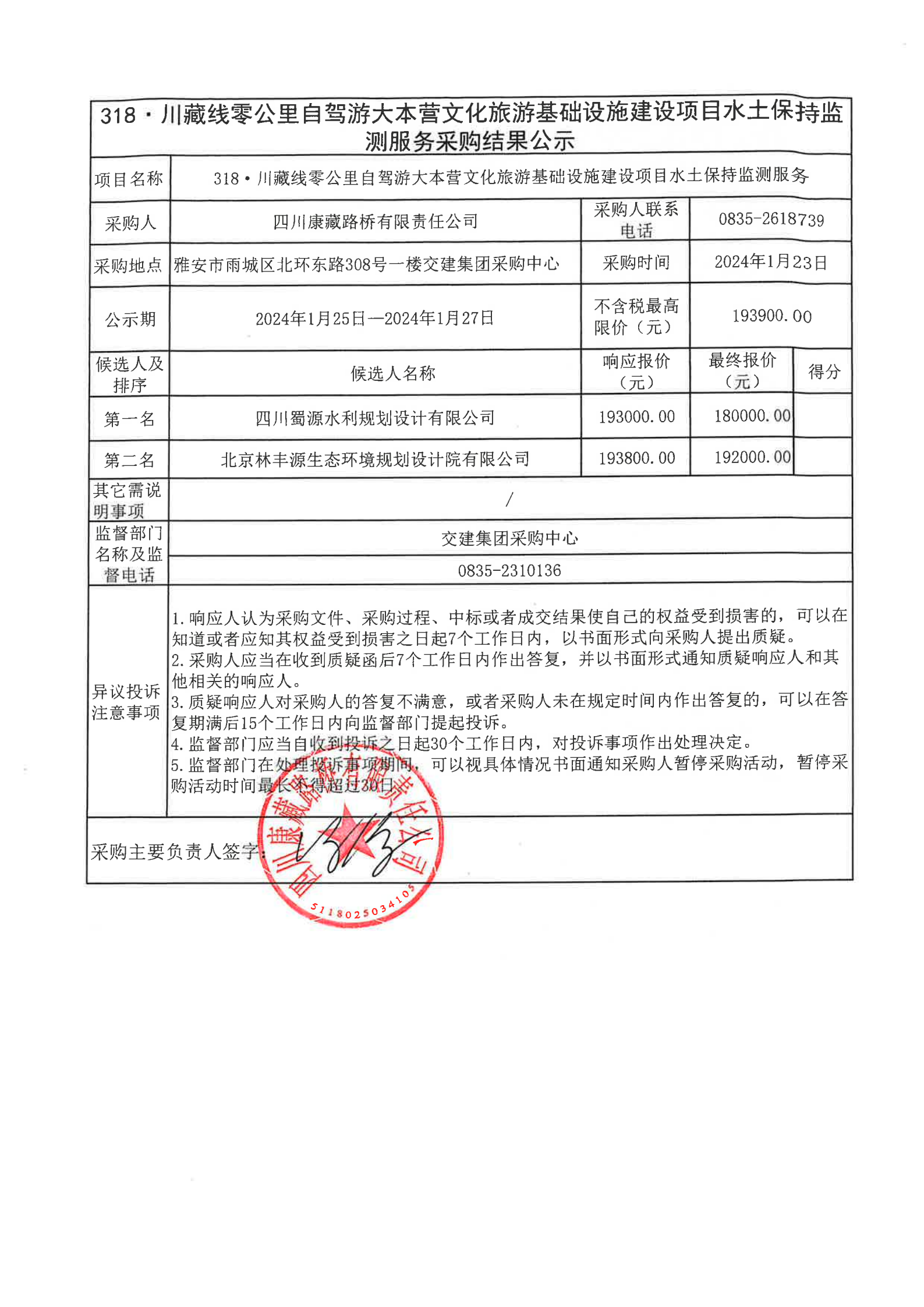 四川康藏路橋有限責(zé)任公司318·川藏線零公里自駕游大本營文化旅游基礎(chǔ)設(shè)施建設(shè)項(xiàng)目水土保持監(jiān)測(cè)服務(wù)采購結(jié)果公示