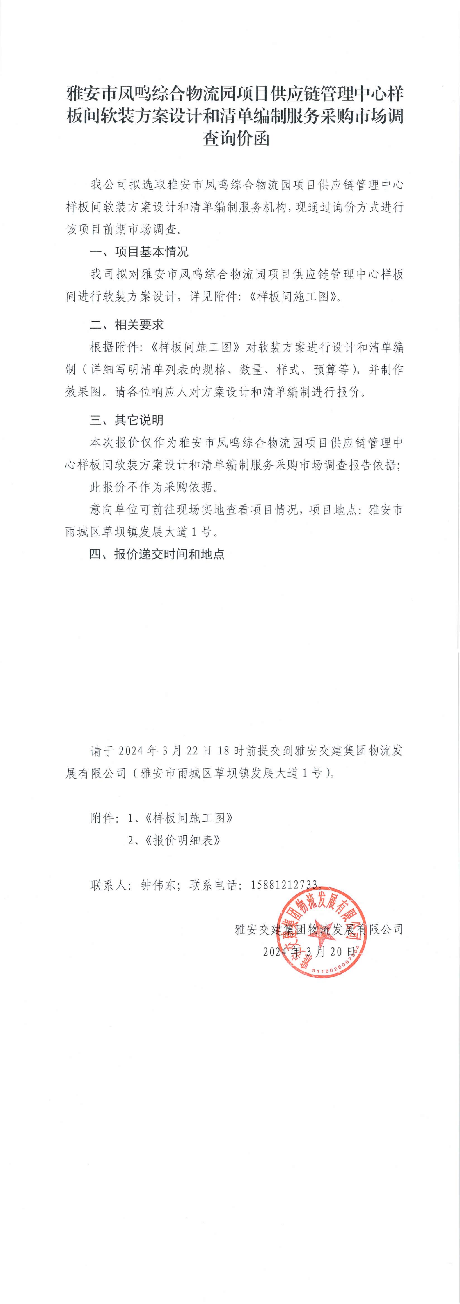 雅安交建集團(tuán)物流發(fā)展有限公司雅安市鳳鳴綜合物流園項(xiàng)目供應(yīng)鏈管理中心樣板間軟裝方案設(shè)計(jì)和清單編制服務(wù)采購(gòu)市場(chǎng)調(diào)查詢(xún)價(jià)函