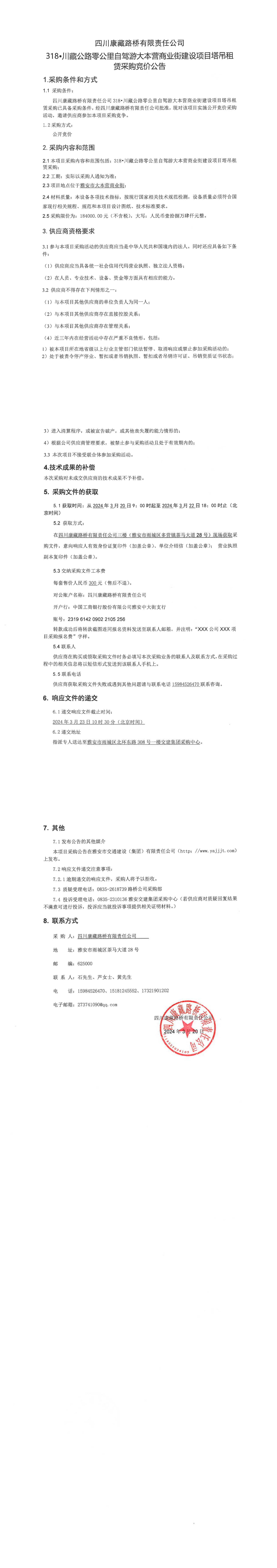 四川康藏路橋有限責(zé)任公司318·川藏公路零公里自駕游大本營商業(yè)街建設(shè)項(xiàng)目塔吊租賃采購競價公告