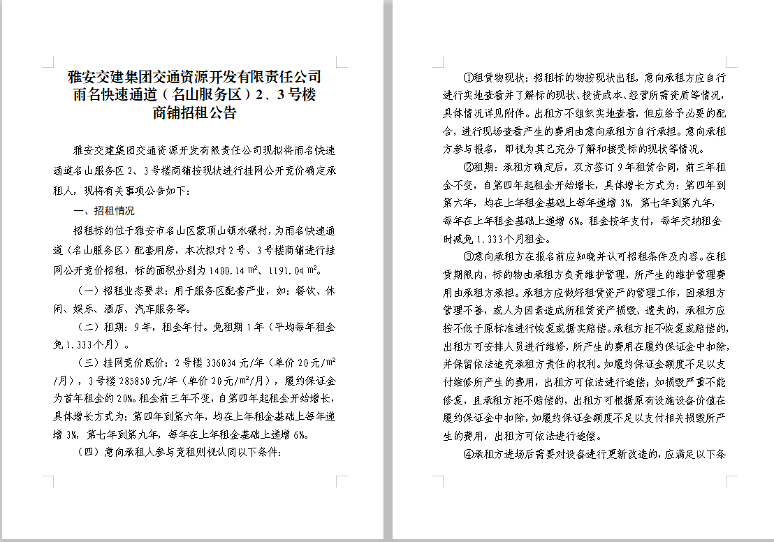 交通資源開發(fā)公司雨名快速通道(名山服務(wù)區(qū))2、3號樓商鋪招租公告附件