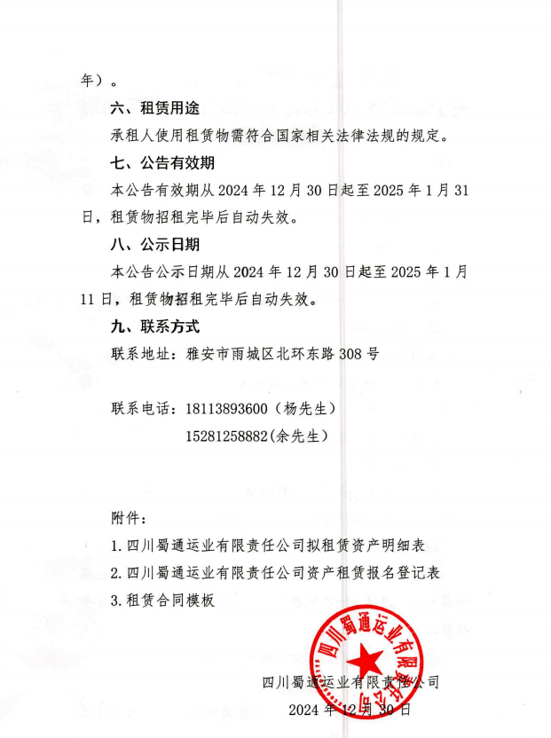四川蜀通運業(yè)有限責任公司 關于康藏路261號附40號門面進行掛網(wǎng)招租的公告