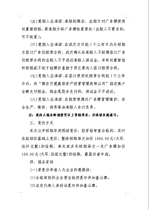 雅安交建集團資產經營管理有限公司關于戶外廣告位競價招租的公告附件