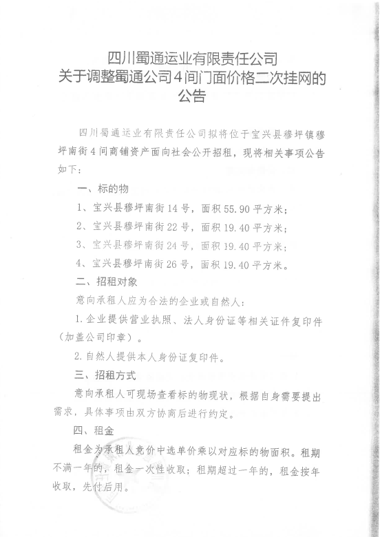 ËÄ´¨Êñͨß\˜I(y¨¨)ÓÐÏÞØŸ(z¨¦)Èι«Ë¾êP(gu¨¡n)ÓÚÕ{(di¨¤o)ÕûÊñͨ¹«Ë¾4égéTÃæƒr¸ñ¶þ´Î’ì¾W(w¨£ng)µÄ¹«¸æ