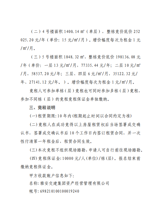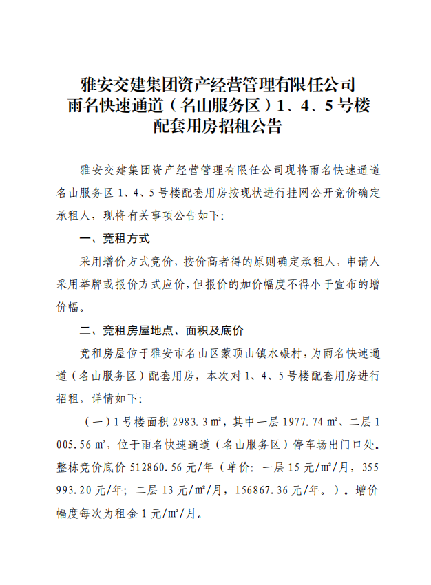 雅安交建集團(tuán)資產(chǎn)經(jīng)營(yíng)管理有限任公司 雨名快速通道(名山服務(wù)區(qū))1、4、5號(hào)樓 配套用房招租公告
