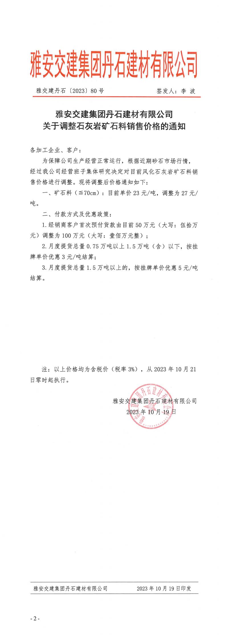 ÑŰ²½»½¨µ¤Ê¯¹«Ë¾êP(gu¨¡n)ÓÚʯ»Ò?gu¨©)rµVʯÁÏÕ{(di¨¤o)ƒr(ji¨¤)µÄ֪ͨ--2023.10.20