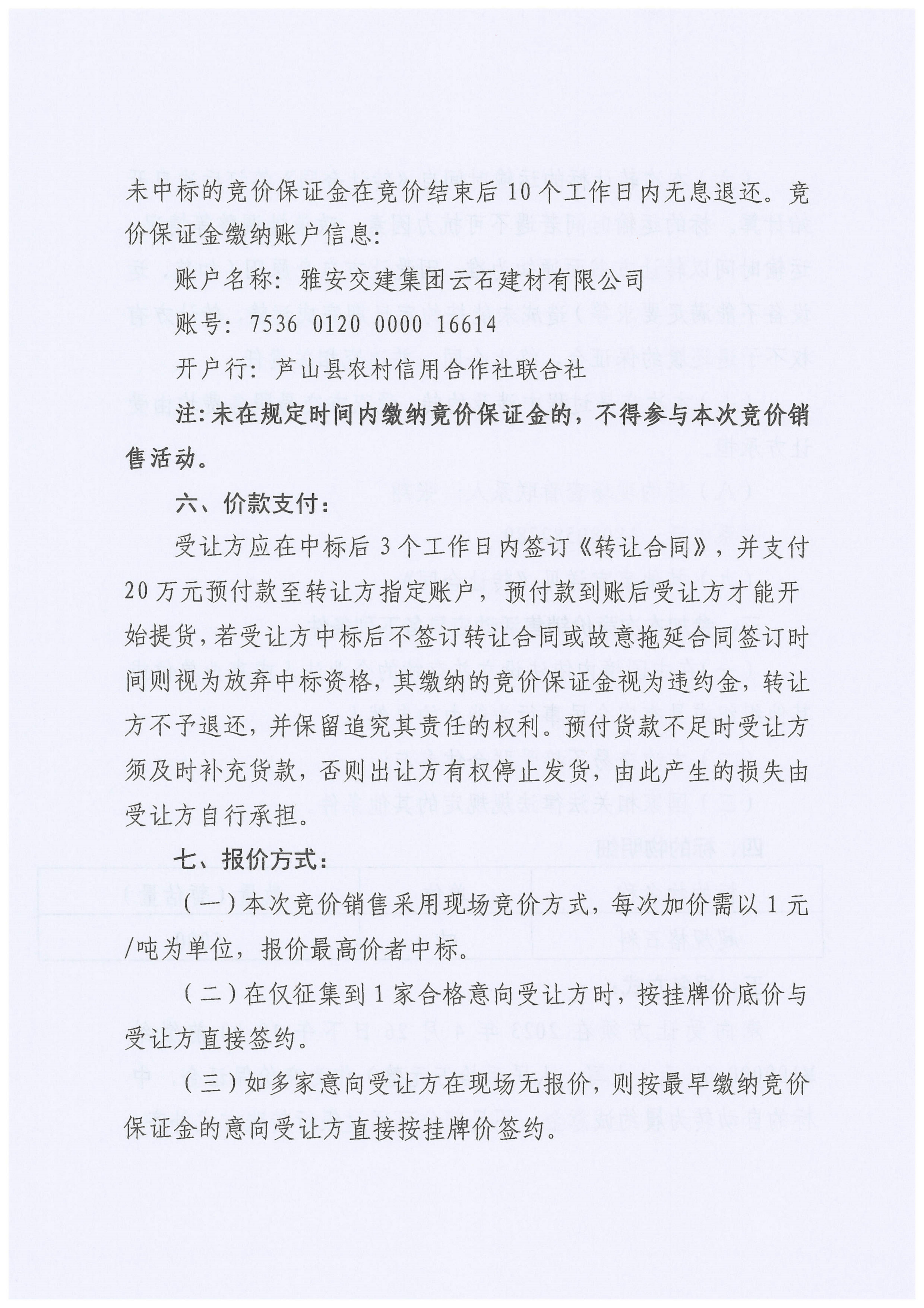 雅交建云石建材有限公司超規(guī)格石料競(jìng)價(jià)銷(xiāo)售公告(2023-4-24)